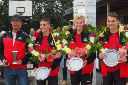 Jellum-Bears-14-augustus-2019-revanche-freule-vlnr.-coach-Kees-Laanstra-Wiebe-Siemen-Leenstra-Jelmer-Miedema-en-Harold-de-Boer door redactie | aug 14, 2019